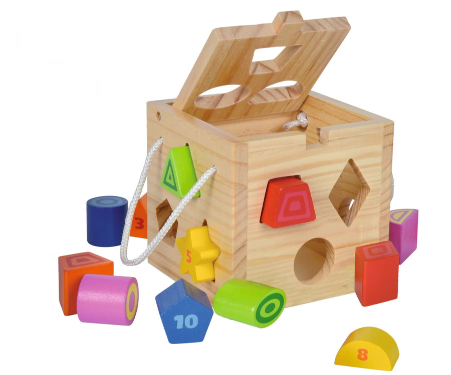 12 verschiedene Steckbausteine, 13-tlg., 14,5x14,5x14,5cm, Kiefernholz, BSK, 1J+