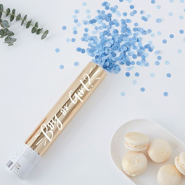Der Konfetti Shooter "Boy or Girl" blau für kreative Feiern