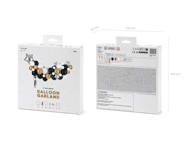 Luftballongirlande Sterne, Farbenmix, Set enthält: Latexluftballons (52 Stk.), Luftballon zum Modellieren (1 Stk.), Folienluftballons (6 Stk.), Girlande (1 Stk.), Schaumstoffband (30 Stk.), Papierstrohhalm (1 Stk.), 0,5m Girlandenband. Abmessungen ca. 167x135 cm. Anweisungen enthalten.