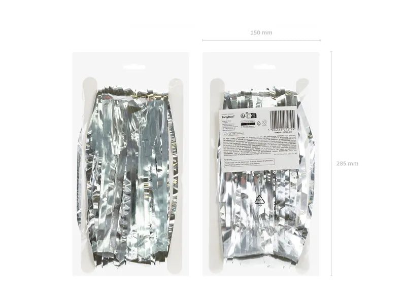 Metallic-Partyvorhang in Silber, Breite ca. 100 cm, Höhe ca. 200 cm. Hergestellt aus Folie mit einer Dicke von 20 µm.