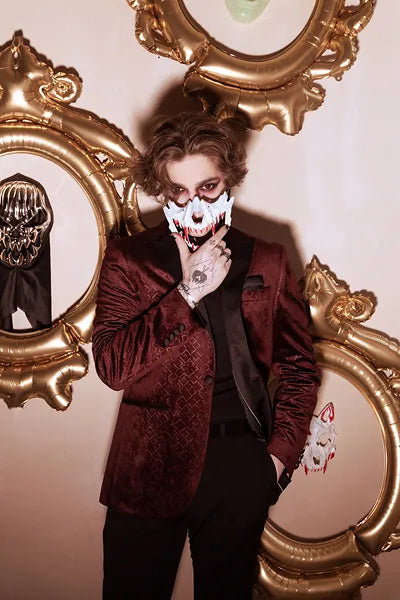Totenkopfmaske in Weiß-Rot, Maskengröße ca. 16.5 x 14 cm.