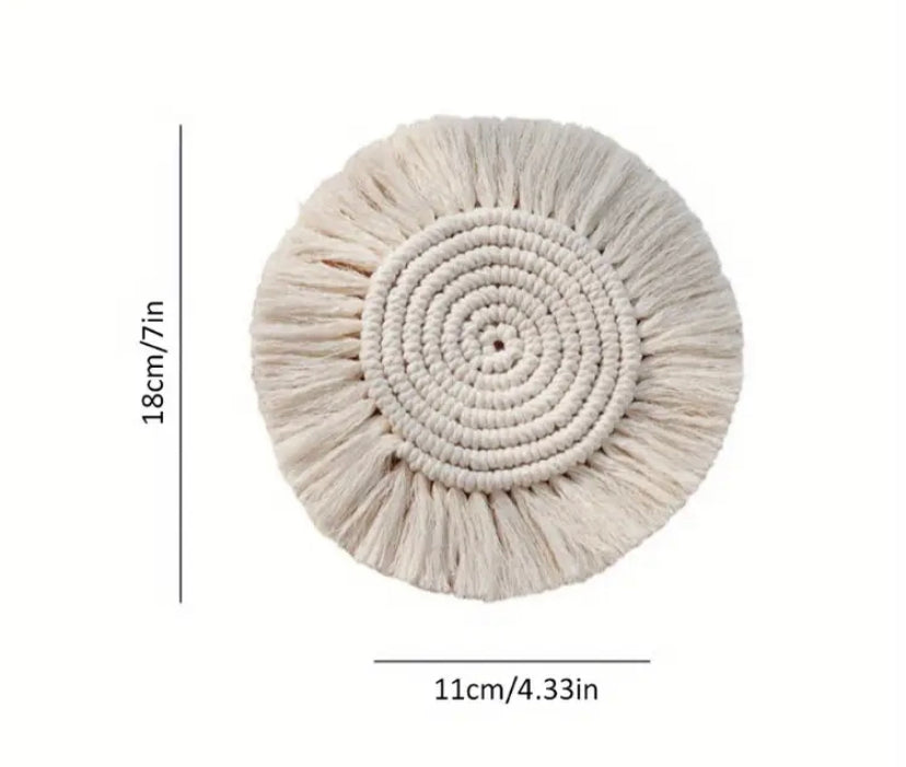 Dekoratives Tischpad mit Tassel, Bohemia Macramé-Küsten-Untersetzer - Handgefertigter Runder Baumwoll-Zopf-Tassel-Schutzmatte - Dekoratives Tischpad für Kaffee, Restaurant und Wohngebrauch